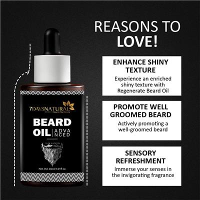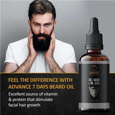 Commit to a beard that’s not just visually impressive but also touchably soft and well-nourished with 7 Days Natural Beard Oil Advanced. Packed with a special blend of nourishing ingredients, this beard oil penetrates deep into each strand, stimulates follicles, and promotes healthier, fuller growth. Think of it as a spa day for your beard—keeping it soft, shiny, and perfectly styled every day. ✅ Deeply Nourishes & Moisturizes – Hydrates beard hair and skin beneath, eliminating dryness and itchiness. ✅ Promotes Fuller & Thicker Growth – Stimulates follicles to encourage stronger, denser beard growth. ✅ Softens & Smoothes – Tames coarse, unruly strands for a softer and more manageable beard. ✅ Enhances Beard Health & Style – Maintains shine, strength, and overall grooming. ✅ Suitable for All Beard Types – Effective for short, long, patchy, or thick beards. ✅ Daily Grooming Essential – Lightweight, non-sticky formula for everyday use. ✅ Confidence Boosting – Leaves your beard shiny, sweet-smelling, and neatly styled. 📝 How to Use: 1️⃣ Cleanse – Wash beard with a gentle beard shampoo & pat dry. 2️⃣ Dispense Oil – Pour a few drops into your palm (amount depends on beard length & thickness). 3️⃣ Warm & Distribute – Rub hands together and spread evenly through beard, from roots to tips. 4️⃣ Massage – Use fingertips to massage oil into beard & skin beneath, stimulating follicles. 5️⃣ Comb & Style – Finish with a beard comb/brush for even distribution & a polished look. ⚠️ Tip: Use daily for best results—apply after showering when beard is slightly damp for maximum absorption.