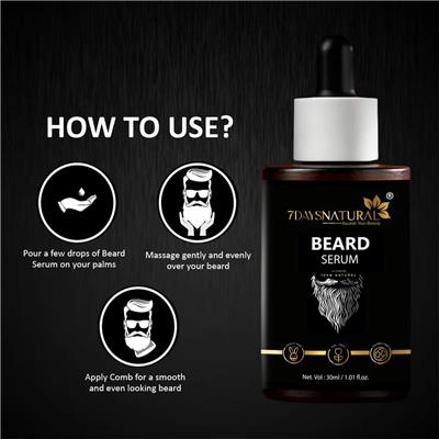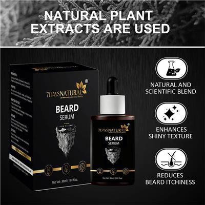 Beard Serum | Hydration & Softness | Stronger Growth | Daily Grooming Upgrade your grooming routine with the 7 Days Natural Beard Serum, a premium blend of argan, lemon, cedarwood, sunflower oils, and vitamin E. This nourishing formula hydrates, softens, and strengthens your beard while caring for the underlying skin. Designed for daily use, it keeps your beard smooth, manageable, and healthier with every application. ✅ Hydrates & Moisturizes – Eliminates dryness and itchiness, keeping beard and skin nourished. ✅ Vitamin E Enriched – Deeply nourishes follicles, stimulating stronger and healthier growth. ✅ Softens & Smoothes – Tames coarse, unruly hair for a softer, more manageable beard. ✅ Promotes Fuller Growth – Strengthens roots and supports thicker, more robust beard growth. ✅ Nourishing Oil Blend – Argan, lemon, cedarwood, and sunflower oils deliver complete beard care. ✅ Daily Grooming Essential – Suitable for all beard types, designed for everyday use. ✅ Easy Styling – Smooth texture makes beard easier to shape and style. How to Use: Dispense – Pump a small amount of serum onto fingertips. Massage – Gently massage into beard from roots to tips. Distribute Evenly – Ensure coverage across the entire beard. Routine – Use daily for best results and healthier growth. ⚠️ Tip: Apply after showering when beard is slightly damp for maximum absorption and softness.