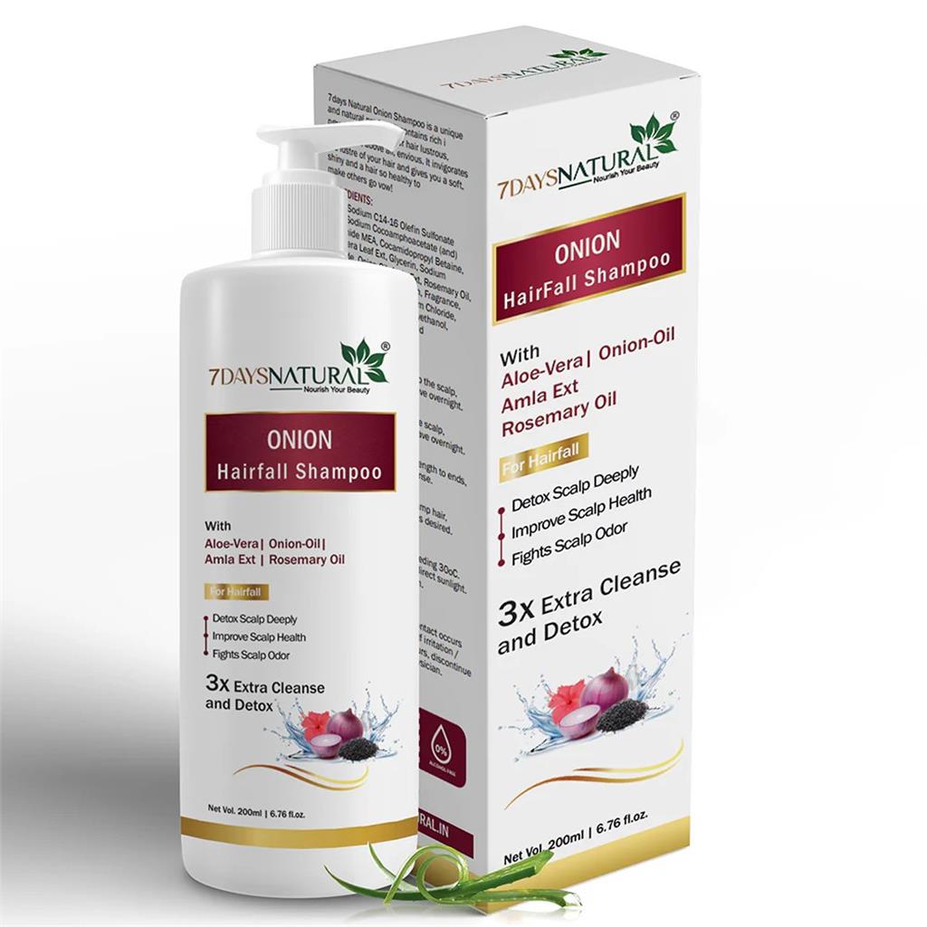 Hair Growth Shampoo | Anti-Hair Fall | Dandruff Control | Natural Shine Strengthen, nourish, and revitalize your hair with 7 Days Natural Red Onion Black Seed Oil Shampoo. Enriched with red onion extract, black seed oil, amla, aloe vera, and rosemary, this herbal formula boosts natural growth, reduces hair fall, and restores shine. Gentle yet effective, it improves scalp health, controls dandruff, and leaves hair soft, smooth, and manageable. ✅ Hair Growth & Strength – Onion extract boosts growth, strengthens roots, and nourishes the scalp. ✅ Anti Hair Fall & Dandruff Control – Reduces breakage, dandruff, and thinning for fuller, healthier hair. ✅ Natural Nourishment & Shine – Herbal actives reduce frizz, dryness, and split ends while restoring shine. ✅ Rich in Nutrients – Onion oil with sulfur, potassium, and antioxidants accelerates regrowth. ✅ Chemical-Free Formula – Free from sulfates, parabens, and harsh chemicals; safe for all hair types. ✅ Herbal Blend – Infused with onion oil, amla extract, aloe vera, rosemary oil, and glycerin for deep care. ✅ Unisex & Daily Use – Suitable for men and women, effective for all hair types. How to Use: Apply – Take a small amount of shampoo and apply to wet scalp and hair. Massage – Gently massage with fingertips to create a rich lather. Rinse – Wash thoroughly with water. Condition – Follow with a silicone-free conditioner for best results. ⚠️ Tip: Use regularly (2–3 times a week) for stronger, thicker, and healthier-looking hair.