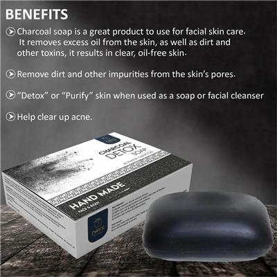 š§¼ Charcoal Detox Soap | Deep Cleansing | Oil Control | Skin Detox Refresh and rejuvenate your skin with 7 Days Natural Charcoal Detox Soap, enriched with activated bamboo charcoal and natural moisturizers. This chemical-free, paraben-free, toxin-free formula draws out dirt, oil, and impurities while leaving skin nourished, smooth, and radiant. ā Deep Cleansing Action ā Activated charcoal acts like a dirt magnet, unclogging pores and removing toxins. ā Exfoliates Gently ā Helps slough off dead skin cells, revealing a smoother, brighter complexion. ā Fights Acne & Blemishes ā Removes excess oil and impurities, reducing breakouts and blemishes. ā Balances Oily Skin ā Controls excess sebum, keeping skin fresh and matte. ā Soothes & Heals ā Calms irritated or inflamed skin, restoring comfort and balance. ā Prevents Premature Aging ā Antioxidants fight free radicals, improving elasticity and repairing skin cells. ā Natural & Safe ā Free from chemicals, parabens, and toxins, making it suitable for all skin types. š How to Use: 1ļøā£ Wet skin with water. 2ļøā£ Lather soap between hands and apply evenly on face & body. 3ļøā£ Massage gently in circular motions for cleansing and exfoliation. 4ļøā£ Rinse thoroughly with water. ā ļø Tip: Use daily for fresh, glowing, and toxin-free skin. Ideal for oily and acne-prone skin.