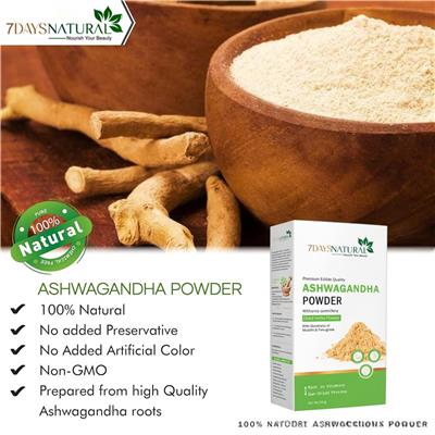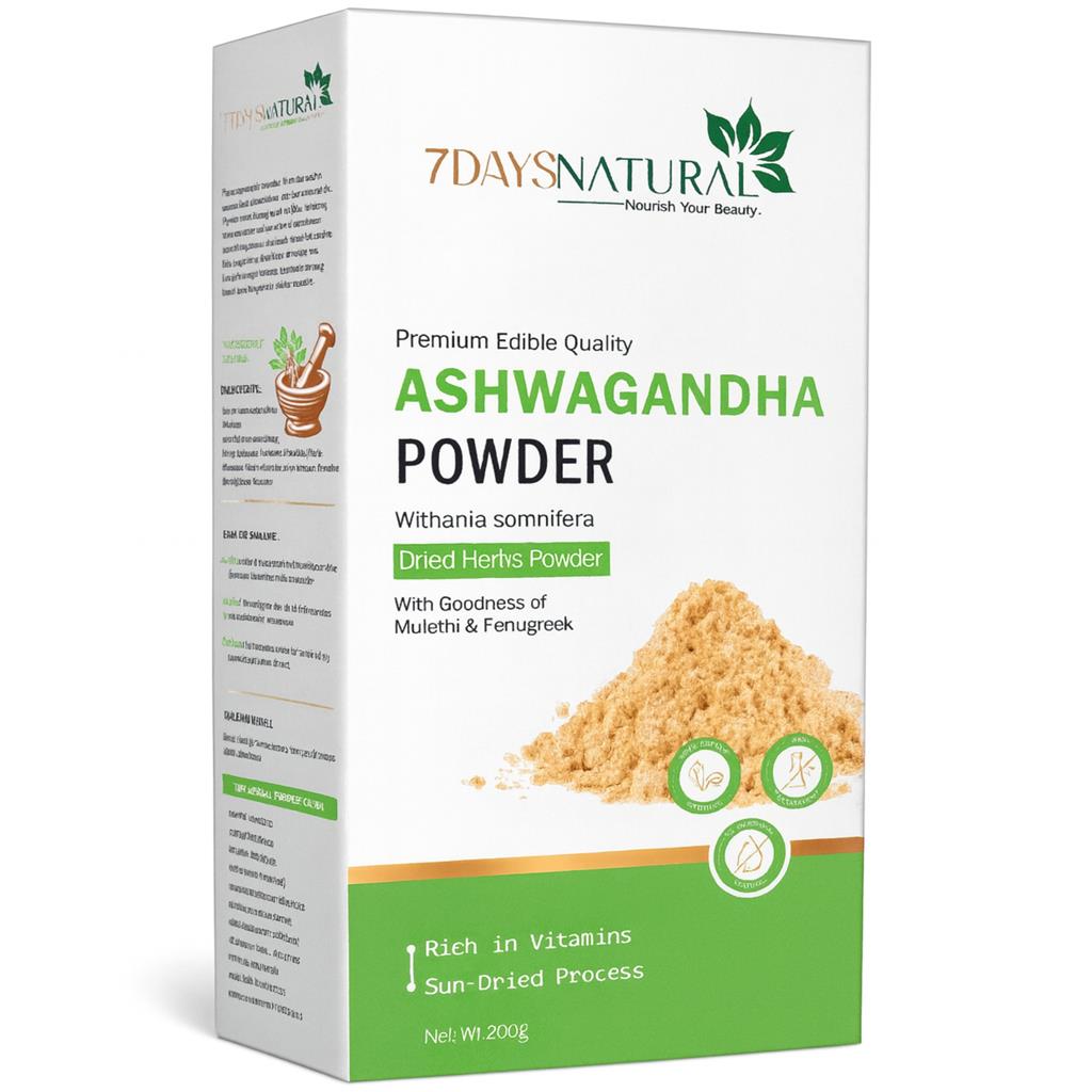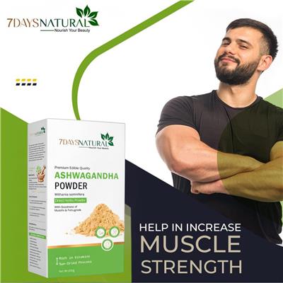 🌿 Ashwagandha Powder | Immunity Boost | Stress Relief | Strength & Vitality Recharge your health naturally with 7Days Ashwagandha Powder (200g) enriched with the added goodness of Mulethi and Fenugreek. This herbal powerhouse supports immunity, reduces stress, strengthens muscles, and promotes overall vitality. ✅ Balances Blood Sugar – May help regulate insulin secretion and improve sensitivity. ✅ Boosts Immunity – Strengthens the body’s defense against seasonal infections. ✅ Supports Joint Health – Natural analgesic & anti-inflammatory properties ease stiffness and discomfort. ✅ Enhances Muscle Growth – Improves lower limb strength and aids in recovery from weakness. ✅ Reduces Stress & Anxiety – Acts as a natural adaptogen to calm the mind and body. ✅ Herbal Goodness – Infused with Mulethi & Fenugreek for added nourishment. ✅ Daily Vitality – Promotes stamina, endurance, and overall wellness. 📝 How to Use: 1️⃣ Dosage – Take 1 teaspoon (about 5g) Ashwagandha powder daily. 2️⃣ Mix – Blend with warm milk, water, or smoothies. 3️⃣ Routine – Consume regularly for best results. ⚠️ Tip: Recommended intake is 5–10g per day. Consult a healthcare professional if under medication.