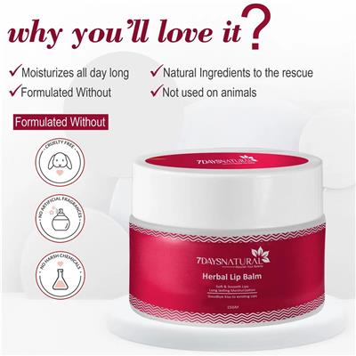 š 7Days Lip Balm | Long-Lasting Hydration | UV Protection | Natural Tint Experience the ultimate lip care with 7Days Lip Balm ā a nourishing blend that delivers deep hydration, protection, and repair for soft, smooth, and healthy lips. Enriched with Beetroot Oil for a natural rosy tint and Calendula Wax for healing, it keeps your smile radiant and moisturized all day. ā Repairs Dry & Cracked Lips ā Restores moisture and heals irritation for softer lips. ā Antioxidant Protection ā Fights free radicals and prevents damage to delicate skin. ā Smooth Texture ā Creates a soft, supple, and even lip surface. ā UV Shield ā Protects lips from harmful rays and harsh environmental factors. ā Long-Lasting Care ā Locks in hydration for all-day comfort. ā Natural Tint ā Beetroot Oil gives a subtle rosy glow. ā Healing Formula ā Calendula Wax repairs and revitalizes damaged skin. š How to Use: 1ļøā£ Apply As Needed ā Use on dry, cracked, or chapped lips for instant relief. 2ļøā£ Start Fresh ā Apply on clean lips, free of makeup, for maximum absorption. 3ļøā£ Daily Care ā Make it a part of your routine for complete lip nourishment. 4ļøā£ Safe & Gentle ā Free from chemicals and side effects, suitable for everyday use. ā ļø Tip: Carry it with you and reapply throughout the day for soft, pink, and luscious lips.