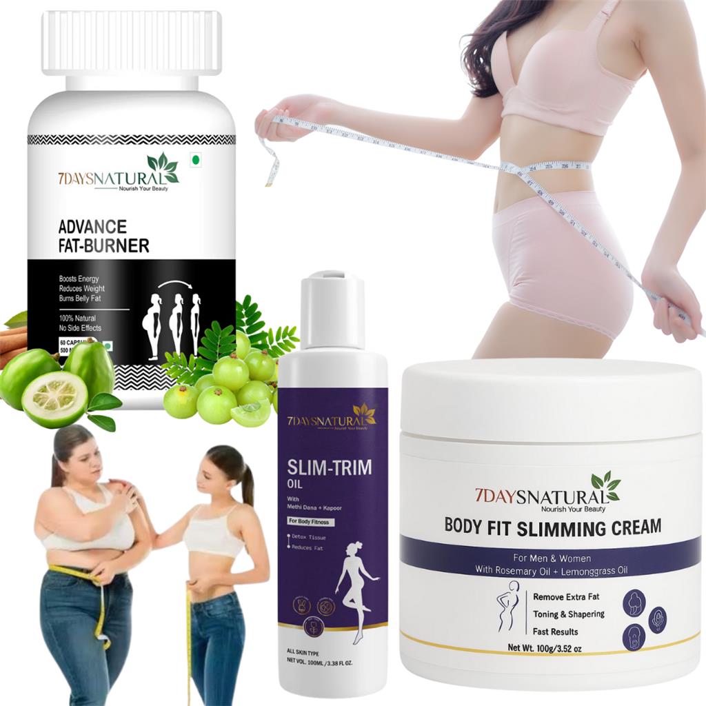 7 Days Natural Weight Loss Combo – Your All-Natural Body Transformation Kit! 💥 3 Powerful Products in One Combo: 1️⃣ Advanced Fat Burner Capsules – Made with Garcinia Cambogia, Cinnamon, and Green Tea Extract – Naturally boosts metabolism and energy levels – Targets stubborn belly fat and suppresses appetite – No chemicals, no side effects – 100% plant-based 2️⃣ 7-Day Slimming Cream – Herbal formula with Rosemary Oil, Lemongrass Oil & Green Coffee Bean Extract – Reduces inches from arms, tummy, waist, and thighs – Firms and tightens the skin – Absorbs quickly, non-sticky, and easy to apply 3️⃣ Slim Trim Oil – Infused with Mustard Oil, Camphor, and Herbal Blends – Helps break down fatty deposits and cellulite – Improves blood circulation and skin texture – Use daily with massage for best results 🌱 100% Natural – Safe for Men & Women – No harmful chemicals – No crash diets needed – Perfect for beginners or those breaking weight loss plateaus 🔍 What You’ll Experience in Just 7 Days: ✔️ Increased energy & fat burning ✔️ Reduced bloating and visible inch loss ✔️ Firmer, more toned skin ✔️ Boost in confidence & motivation