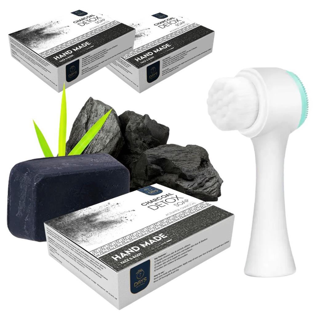 3-Piece Charcoal Soap Combo with Free 3D Facial Cleansing Brush ✅ Deep Cleansing & Detox – Activated bamboo charcoal draws out dirt, oil, and toxins from deep within pores for purified, refreshed skin. ✅ Acne & Oil Control – Helps reduce breakouts, balance oily skin, and control excess sebum for a clear, matte finish. ✅ Gentle Exfoliation – Chemical-free, paraben-free, and toxin-free formula removes dead skin cells while keeping skin smooth and nourished. ✅ Soothes & Protects – Enriched with natural moisturizers and antioxidants to calm irritation, promote healing, and prevent premature aging. ✅ Bonus Facial Brush – Includes a Two-Sided Silicone Cleansing Brush for deep cleansing, gentle exfoliation, and improved circulation. ✅ For All Skin Types – Suitable for both men and women, including sensitive skin. ✨ Refresh, detoxify, and glow — every day, the natural way!
