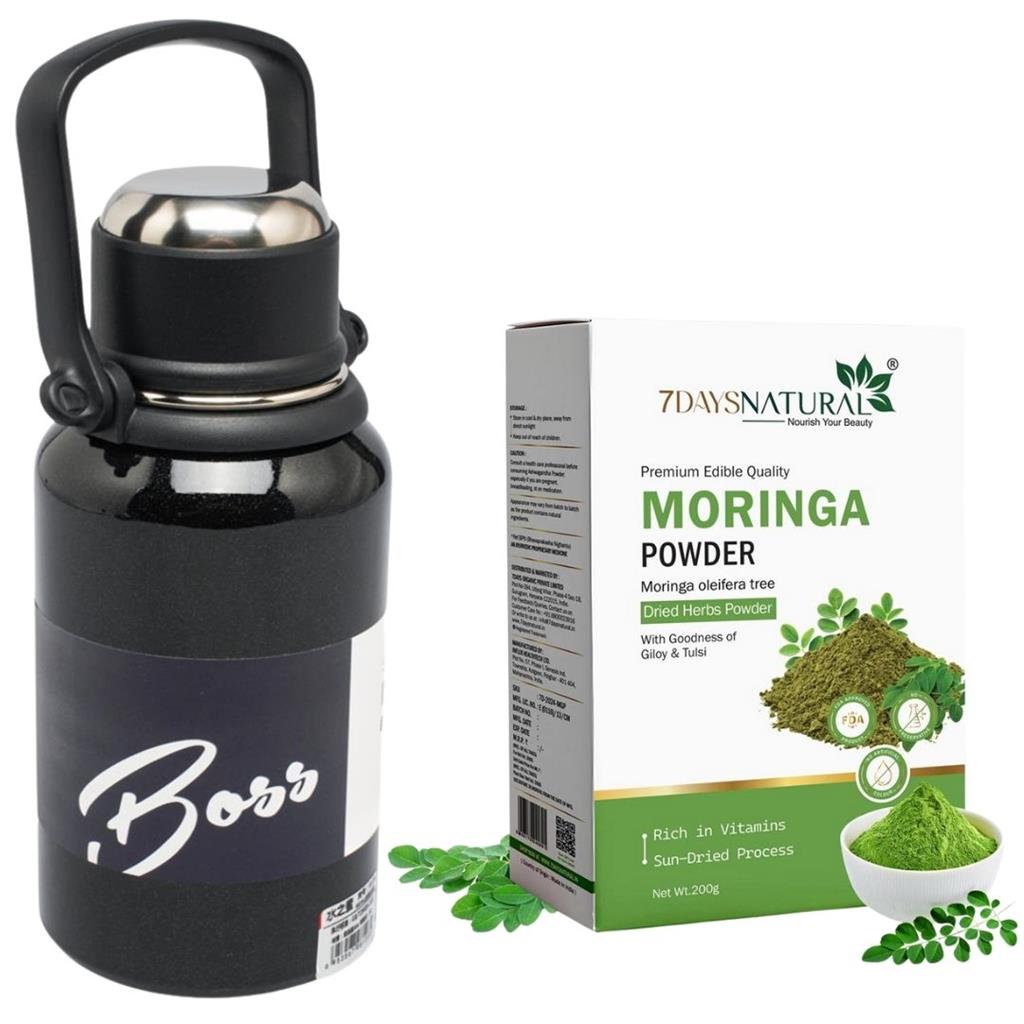 MDHL Vacuum Insulated Kettle Bottle + 7Days Moringa Powder Combo Premium MDHL Vacuum Insulated Kettle Bottle (900ml) Made with 316 stainless steel for durability, safety, and long-lasting performance. Keeps drinks hot or cold for 6–12 hours — perfect for school, work, travel, and daily use. Comes with a secure lifting handle and comfortable strap cord for easy carrying. Includes a stainless steel cup cover for convenient sipping anywhere. Built-in removable stainless steel filter — ideal for herbal drinks, detox water, infused teas, and powdered supplements. Stylish, compact 27cm design, available in white or black. Suitable for women, kids, couples, students, and anyone on the go. Fuel your body with the power of 7 Days Natural Moringa Powder, one of the most nutrient-dense superfoods on the planet. Packed with vitamins, minerals, amino acids, and antioxidants, it supports overall health, boosts immunity, and promotes natural energy for an active lifestyle. ✅ Highly Nutritious Superfood – Contains all essential amino acids, complete plant protein, and bioavailable vitamins plus trace minerals. ✅ Boosts Immunity – Strengthens natural defenses and supports a healthy circulatory system. ✅ Promotes Digestion – Improves gut health, supports bowel movement, and enhances metabolism. ✅ Energy & Stamina – Increases endurance, vitality, and overall activity levels. ✅ Bone, Brain & Joint Support – Provides nourishment for strong bones, healthy joints, and sharper brain function. ✅ Skin & Beauty Benefits – Rich in antioxidants that fight free radicals, rejuvenate skin, and promote natural glow. ✅ Daily Wellness Support – Works as a natural multivitamin and antioxidant-rich green superfood.